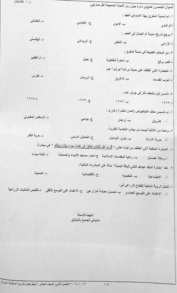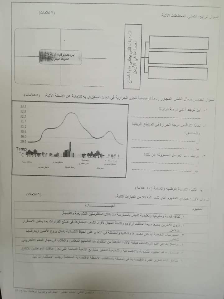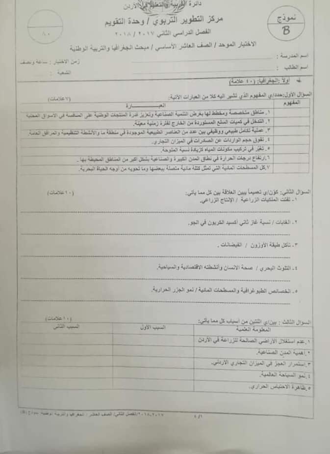 صور اختبار نهائي وكالة نموذج B مادة الجغرافيا و التربية الوطنية للصف العاشر الفصل الثاني 2018