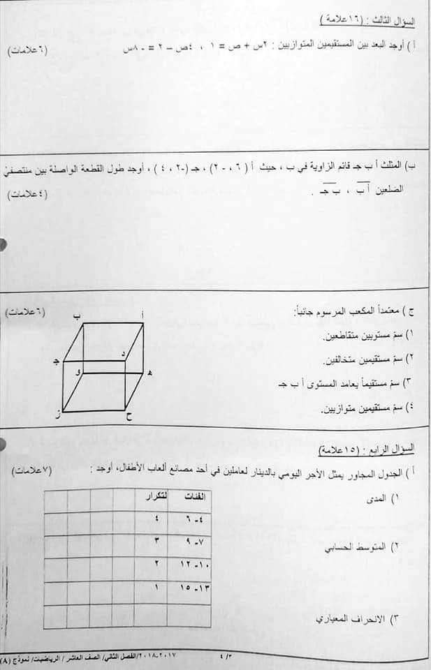 صور اختبار نهائي وكالة نموذج B مادة الرياضيات للصف العاشر الفصل الثاني 2018 صور امتحان نهائي وكالة نموذج B مادة الرياضيات للصف العاشر الفصل الثاني 2018